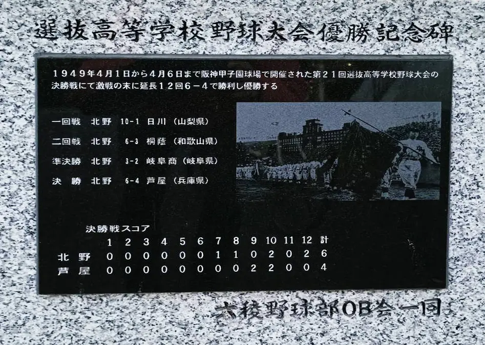 翌年の学制改革を経て北野高等学校となった後、同部は最大の栄光を手にします。それは、1949年(昭和24年)の第21回選抜高等学校野球大会での優勝です。これは、大阪の公立高校としては、現在に至るまで春夏通じて唯一の全国制覇という輝かしい金字塔であり、その後の同部の歴史において最も特筆すべき偉業となっています。